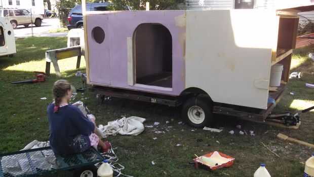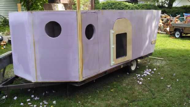 Mi nuevo foamie toma la definición de una lágrima a la max 13 pies de largo, 6 pies de ancho, 4 pies de altura (la dimensión sólo normal) y toda la Plaza. Tiene dos habitaciones y una cocina enorme, cuatro puertas y (cuando es completa, tendrá) una segunda historia que se guarda en la planta baja para el remolque.