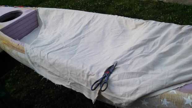 Cubriendo objetos como barcos es más difícil, todos los ángulos impares y hacer bordes redondeados el tela quiere tirar, arrugas y estirar en maneras te no están esperando. Deja un buen borde para cubrir los bordes con aristas retorcidas, la tela tiende a estirar una manera mejor que otros y esto puede cambiar en los bordes de la tela caigan donde corta a la mentira. Se estira la tela, incluso la lona pesada usar en lágrimas, como pegue.