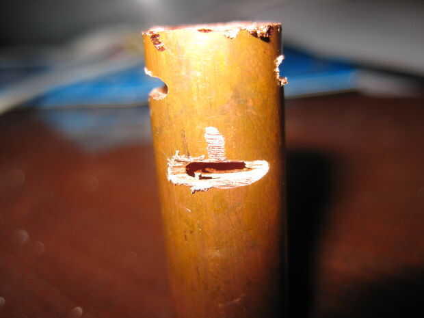 Después de esto corte una serie de sobre 5 o más agujeros en un extremo de la tubería para permitir el metho para arriba en la mecha o taladro. los orificios no es necesario ser grande porque la metho quema lentamente