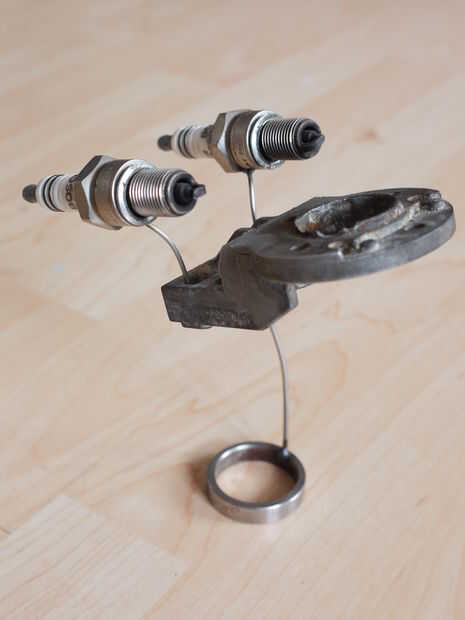 El soporte es un viejo anillo de un cojinete y un final poco de alambre de soldadura de acero inoxidable.
