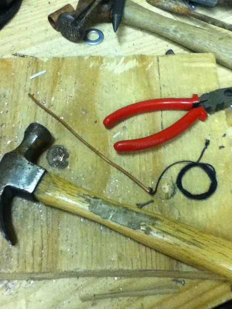 necesita some1/8 "alambre de cobre de diámetro, unos alicates, un martillo y un hilo. Con estos te mostrará cómo hacer un pendiente fresco y fácil con el cobre.