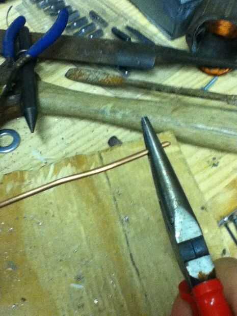 Tomar el otro extremo del cable y usando las pinzas, dobla hacia el bucle.