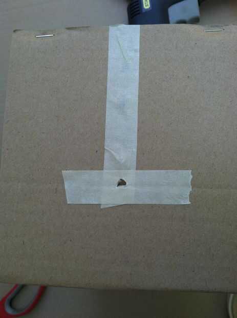 corte pequeños agujeros hasta la mitad dow el lado de la caja y reforzar los orificios con cinta
