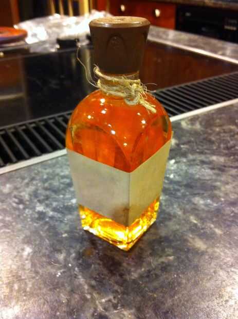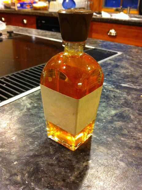 He añadido la cadena como toque final, es solamente áspero cadena de jardinería, pero creo que reúne todo el asunto, así como de la cubierta hasta el borde de la botella debajo de la tapa.