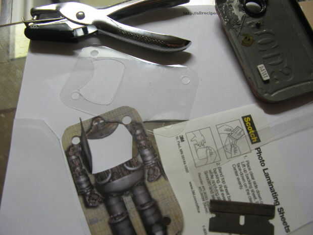 Los primeros bots pocos había sido laminados con cinta de embalaje. Debo haber hecho 4 o 5 y todos tenían los largos pliegues o dobleces. Por fin tuve mi esposa recoger algunas de las hojas de laminado que puede encontrar en las secciones de suministros de oficina de tiendas.