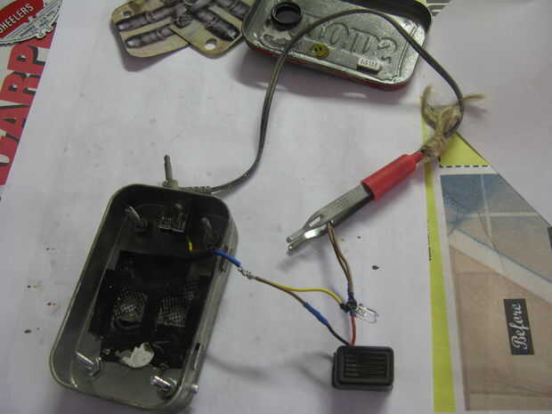 De nuevo, este es el mismo circuito que el juego real de la operación; excepto con un timbre en lugar de un motor. Incluso he utilizado las pinzas de un juego real de la operación. El cable de la pinza llega a su fin con un conector de 3,5 mm, funcionando como algo de un interruptor cuando desenchufándolo. Continuando en el componente femenino, LED/timbre.