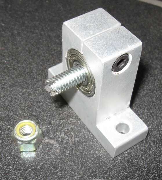Coloque el perno de 1 pulgada a través del cojinete soporte, utilizar varias arandelas espaciadoras y apriete con una tuerca de seguridad de nylon de 5/16. El tornillo debe girar libremente pero no tambalearse.