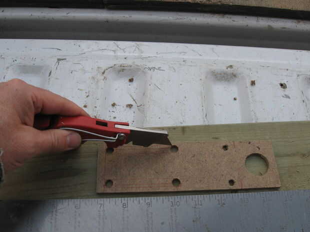 Visualmente esto fue alineado con el bloque de apoyo de la unidad y el soporte motor existente. Esto fue marcado, perforado y golpeado ligeramente para crear la abrazadera de soporte.