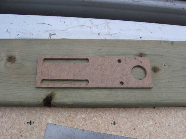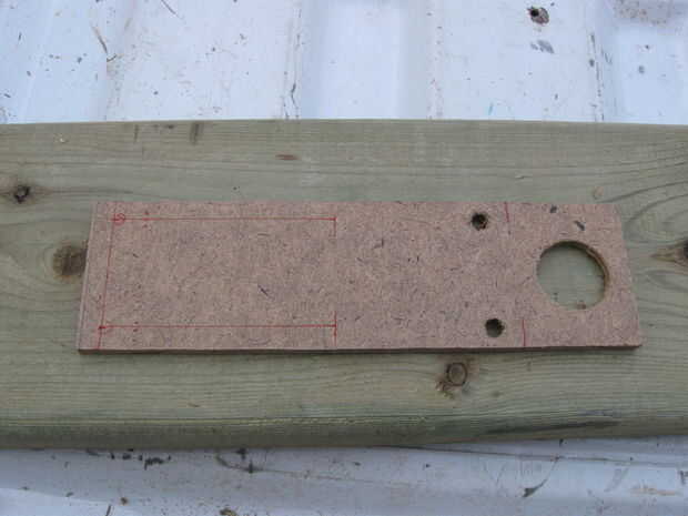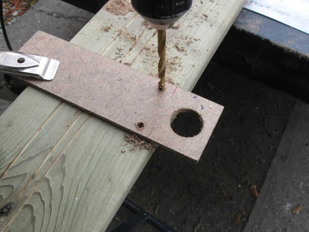Utilizando el bloque de soporte de cola marque los agujeros para el montaje en los puntos más lejanos y más cercanos en la base. Usando una regla marca los agujeros de la diapositiva que se necesitan para el bloque de soporte de pieza de trabajo. Estos agujeros largos permitirán ajustar el área de trabajo para el tamaño de la pieza de trabajo y también se utilizará como una abrazadera manual para la pieza de trabajo.