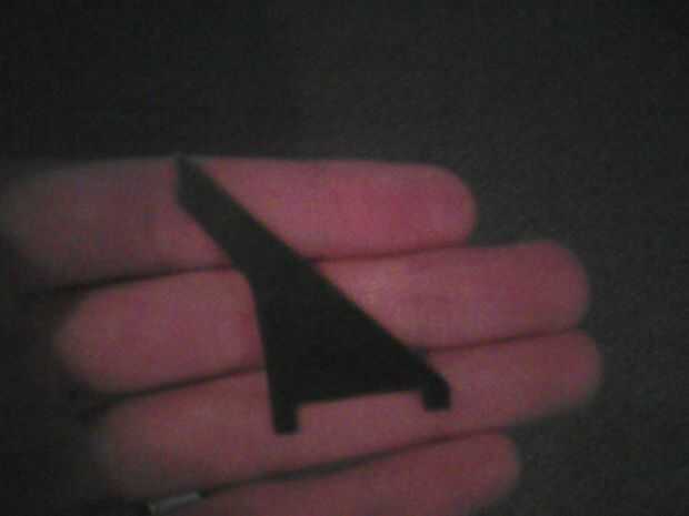El gnomon puede hacerse de cualquier material resistente, sin embargo muchos metales se atornille a la lectura de la brújula y no debe ser utilizado en cualquier parte del reloj de sol. Utilicé una pieza rígida de plástico (polipropileno realmente) que corté de la tapa de un frasco de plástico grande. Cualquier material que utilice, asegúrese de que no romper o doblar muy fácilmente y asegúrese de que es plana. El diseño de impresión y cinta adhesiva a la pieza de material (me gusta usar cinta de doble cara) y el corte de la forma del material. Estar muy seguros que la "esquina de latitud" es en ángulo recto y asegúrese de que saber que es de esquina.