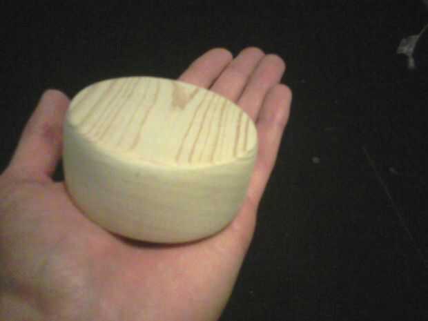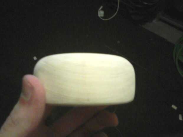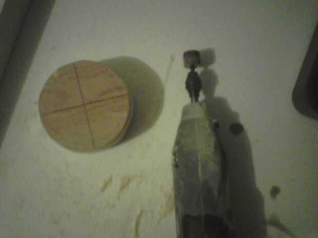 A continuación, lije el duende malicioso usando papel de lija, subir de 60 grano a grano alrededor 220. Utilice el 60 a forma el disco por el tamaño y la forma deseada y el resto para alisar hacia fuera. Después de esto decidí hacer la parte superior redondeada de la parte inferior para que yo fácilmente puedo decirles aparte. Para ello, utilicé mi compás para dibujar un círculo más pequeño en la parte superior (primero elegir que lado será la parte superior), para ser utilizado como una guía. Luego, con la dremel y el accesorio para lijar en bisel y luego, el borde hasta el círculo guía. Arena otra vez con la mano para tenerlo liso.