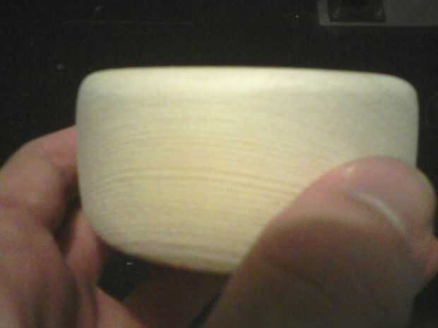 Entonces, usando una dremel (u otra herramienta rotativa) con un redondo accesorio de lijado lijar la pieza aún más la forma/tamaño adecuado. Este paso debe ser capaz de llegar a un disco más o menos circular. También decidieron los cantos superior e inferior un poco.