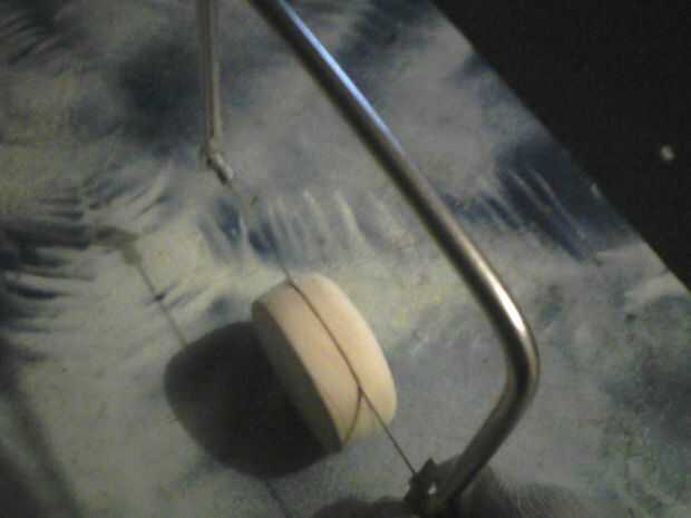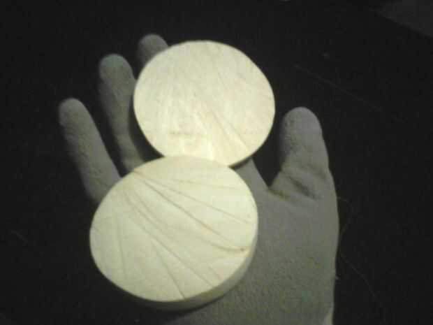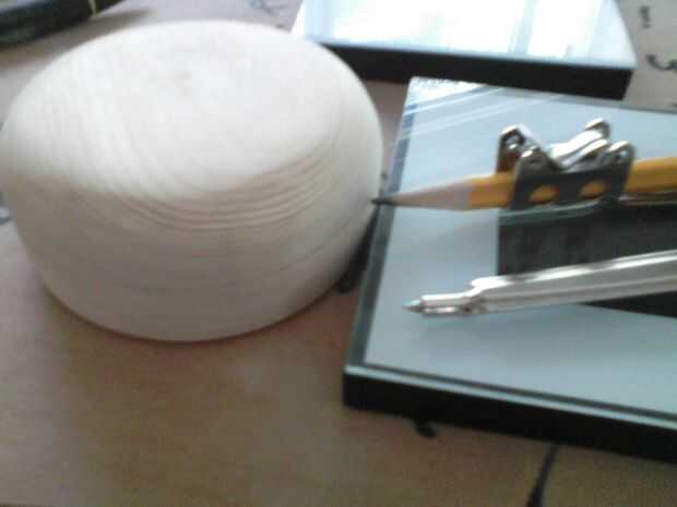 Este reloj de sol será un dos piezas--el fondo tendrá la esfera real y la parte superior será una cubierta, por lo que el siguiente paso es cortar ese disco por la mitad. Para ello, primero trace una línea alrededor del exterior de la pieza, poniendo un lápiz sobre un objeto robusto junto al duende malicioso y gire el disco completamente para crear una línea que recorre todo el camino el disco, a una altura constante. Usé una montaña de cristal poner mi lápiz porque sucedió que me diera la altura deseada, pero un buen truco es utilizar una baraja de cartas (con cajón) por lo que tarjetas se pueden añadir o quitar para obtener la altura exacta que necesita.