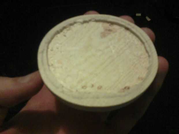Para ello, primero juntar las dos mitades, asegurándose de que estén alineados correctamente y utilizar un lápiz para trazar alrededor de la zona circular de Levante de la pieza inferior. Esto hará que una buena línea a seguir para cortar un agujero en la pieza superior. A continuación, utilizando la configuración de enrutamiento en la dremel, con el bit situado ligeramente más largo que antes, comience en el centro de la pieza superior y comenzar la extracción de materiales. No vaya a su línea todavía.