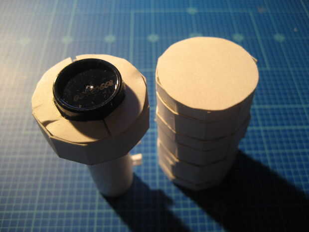 Cortar un círculo de cartón para tapar el extremo del cryptex. Esto ocultará al separador pasado. [Imagen 3]