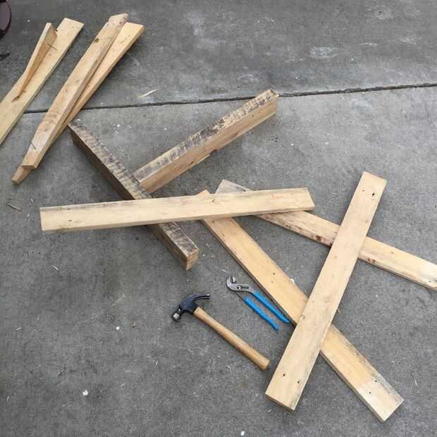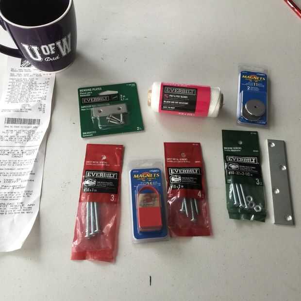 Compramos $15 vale la pena de los tornillos y las correas del metal en Home Depot para sujetar la madera y lo apoyo.