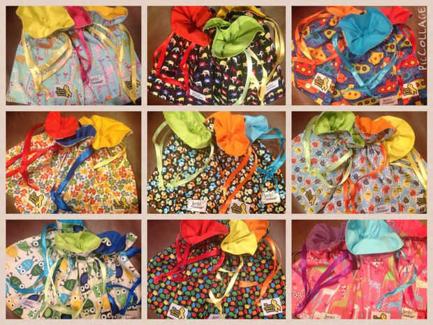 Porque "Cuentas de coraje" ayudó a mi hijo a llegar a un acuerdo con su tratamiento y porque me gusta coser, en un esfuerzo por devolverle algo a la caridad que brindan estas cuentas, he estado haciendo estas bolsitas dulces y enviarlos al hospital que trata a mi hijo, y a la caridad que coordinar el esquema en orden para que puedan ser enviados a otros hospitales del Reino Unido. Hasta ahora he hecho casi 100 de estas bolsas.