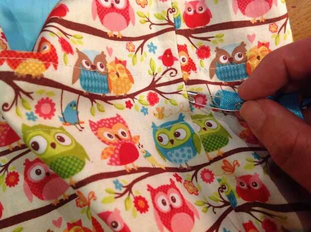 Tomar una de las piezas de cinta o cable, y un alfiler a través del extremo del perno. Empujar el pasador de seguridad a través de uno de los agujeros que hiciste anteriormente y enrósquela suavemente alrededor de la bolsa en el canal que ha hecho. Cuando regreses al inicio, quite el perno de seguridad y unir los extremos de la cinta o cordón.