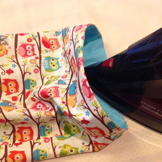 Meta la guarnición dentro, girar a la derecha del tubo hacia fuera. Pulse la costura superior agradable y plana.