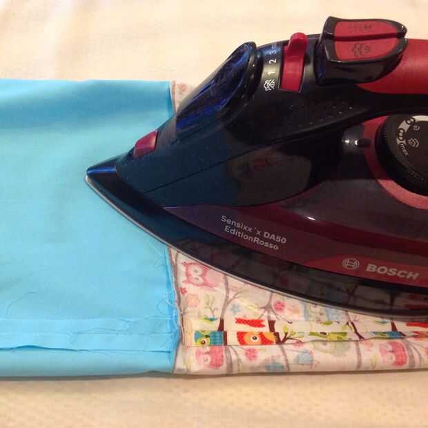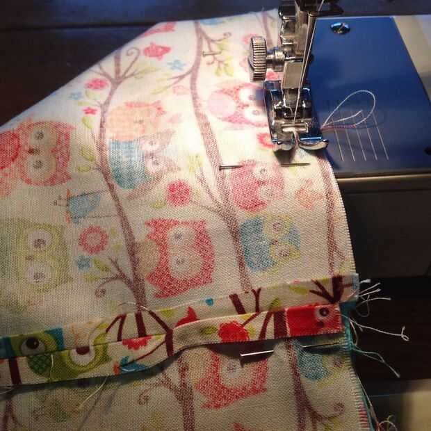 Coser en la parte superior del tubo de 1/4" de la parte superior para unirse a la tela del forro a la tela exterior. Tire el revestimiento del tubo y presione la costura hacia el revestimiento.