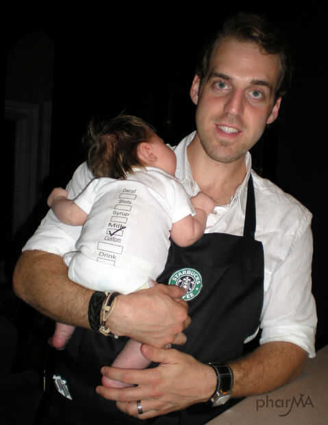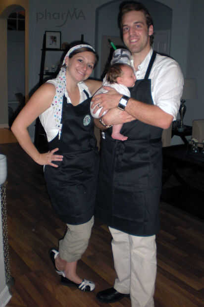 Nuestros trajes consistió en el delantal negro de marca, camisas blancas y pantalones caqui con el logotipo adjuntada (esto se puede encontrar buscando en internet). Así que sí... los Baristas hizo un latte ;)