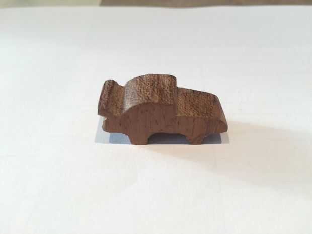 coche de madera simple, orgánico, no tóxico para los niños encantadores de yor.Paso 1: Cortar la carrocería con sierra caladora. No usar cualquier herramienta regla o ángulo. Utilice los ojos para darle una forma redonda angular a la madera. Utilice