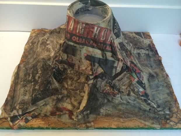 Poner 10 tazas de agua a hervir. Agregar 2 tazas de harina. Hervir un Poco (2-3 minutos) y dejar enfriar. Purgar periódico en Pedacitos pequeños. Sumergir en la mezcla de harina. Cubrir completamente el armazón de alambre con 2 o 3 capas de periódico. Déjelo secar.