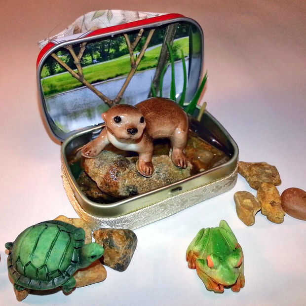 Coge algunos poco ranas, tortugas o nutrias que venga a jugar en su nuevo hábitat.
