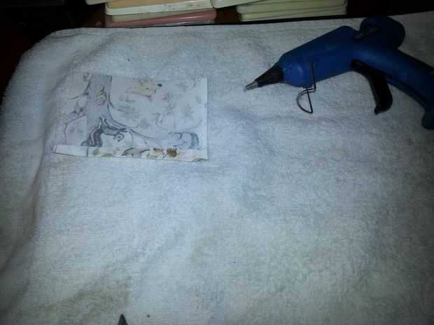 A no-coser la manera de hacer esto es mediante pliegues y pegamento caliente. Corte un pequeño trozo de tela un poco mayor que 2" Plaza.