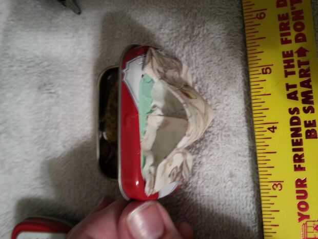 Por último, se reúnen al borde de la parte posterior de su bolsillo (debe tener un borde sin terminar) y recopilar segmentos pequeños y pegamento a la tapa de ductaped de la lata.