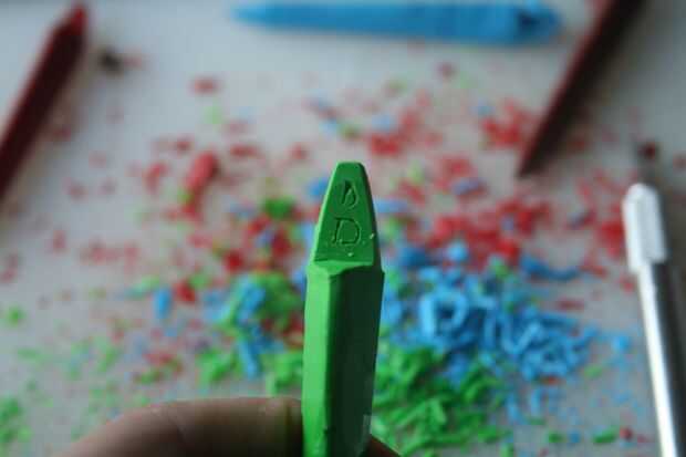1. Raspe cualquier marcas y etiquetas que tienes en tus lápices de colores como en foto 1 y 2