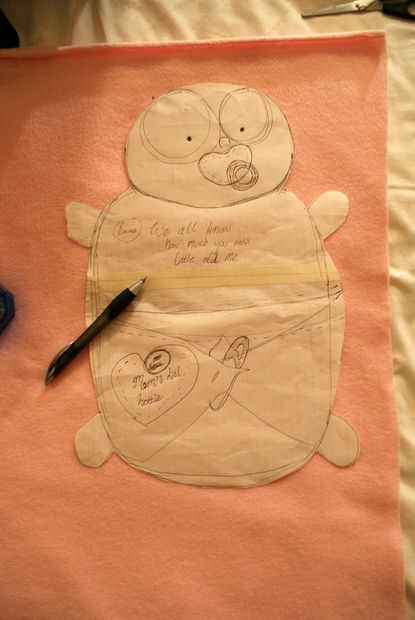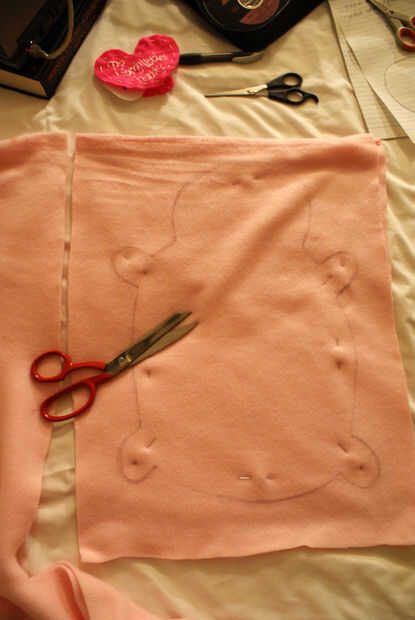 -corte hacia fuera y coloque en el material del paño grueso y suave (he ido con una doble capa de la parte delantera y trasera)