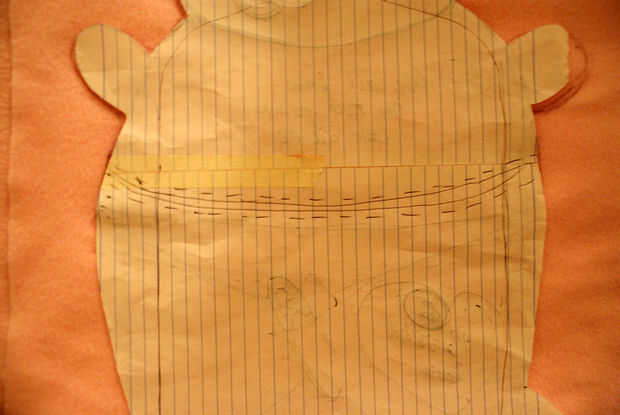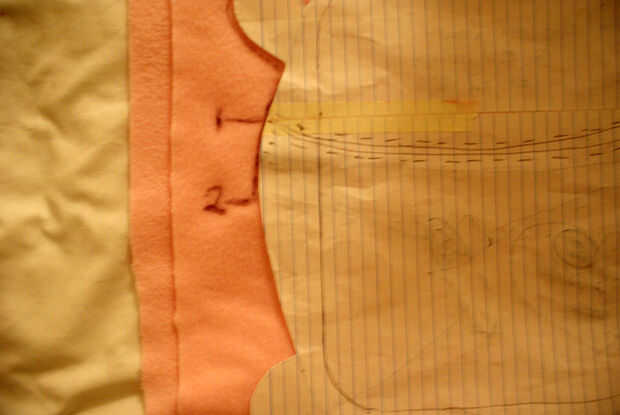 -Hice la botella de agua caliente abrir cerca de un tercio del camino desde la parte superior. -Dónde he marcado los números: 1. cuando la apertura es 2. extendido sección material -necesita la parte material extendida volver sobre sí mismo para coser un dobladillo prolijo
