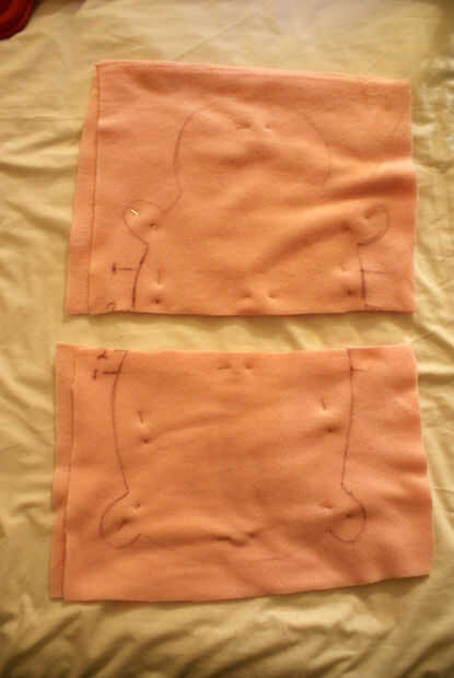 - Cuando Esboce el contorno sobre el material, hacerlo en dos secciones (superior e inferior) -El que quiera las partes extendidas de cada sección -Para el fondo 1 es en la parte inferior y 2 en la parte superior -Pin juntos su material en preparación para el corte a lo largo de la línea número 2