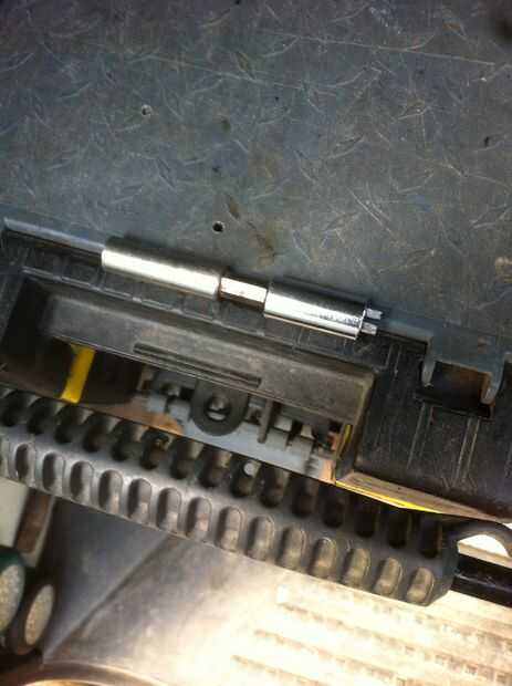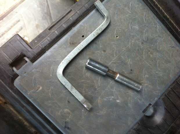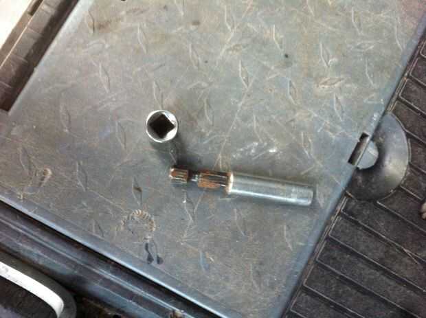 Luego corté una ranura por la mitad de mi barra de 1/4 de pulgada sobre la misma longitud que el destornillador de cabeza plana en la herramienta multipropósito. Utilicé un disco de pulir en mi herramienta rotatoria para hacer la ranura sólo lo suficientemente ancha como para el destornillador de cabeza plana. Luego cortar esta pieza en el eje y había pegado en la ranura de adaptador de 1/4.