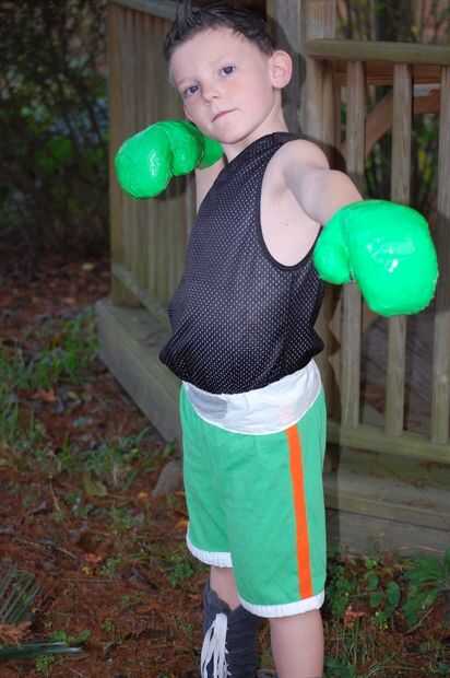 Su un Halloween Smash Brothers este año! Kaiden ha elegido de los numerosos personajes disponibles en el juego de Wii u, como Little Mac. Es un traje muy simple como usted puede usar ropa ya hecha. Hay un enlace en alguna parte en la búsqueda de Google que incluso le dice qué comprar y cuánto y dónde. Aquí está mi versión.