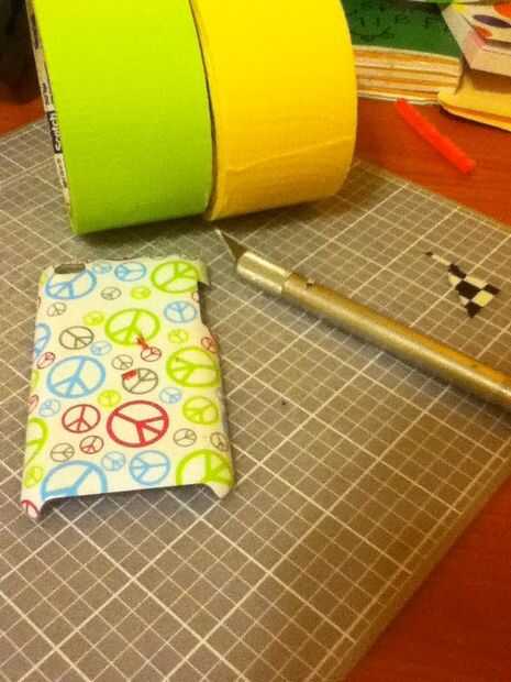 Cartón y conducto cinta caso de i-pod