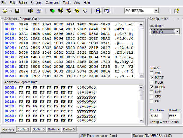 Búscate un programador de pic y utilizar el software que te gusta (IcProg para mí) y el Pic del Flash con el siguiente archivo HEX.