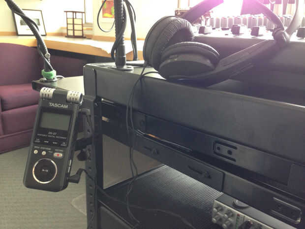He instalado el soporte de la cámara en un hueco libre en uno de los montantes de las estanterías superiores. Esto proporciona un punto ajustable para sostener la grabadora digital que utilizo para grabar el audio, que tienen un agujero roscado que se adapta a cámaras y trípodes estándar montajes como el que elegí.