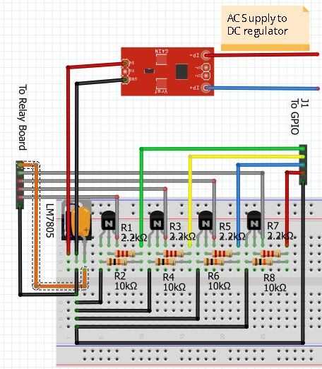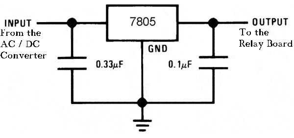 Una vez construido este toma el DC de la energía de la CA a CC y regula a 5V de la placa de relé mediante el LM7805.