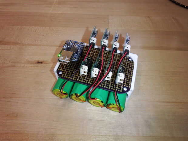 Para la configuración de una sola célula, simplemente soldadura la cabecera hembra de 2 X 4 el tablero de regulador de carga, conectar la batería, luego de la soldadura de pernos macho encabezado a la Junta de voltios DC-DC 5 y conectarlo a la tarjeta controladora de carga.