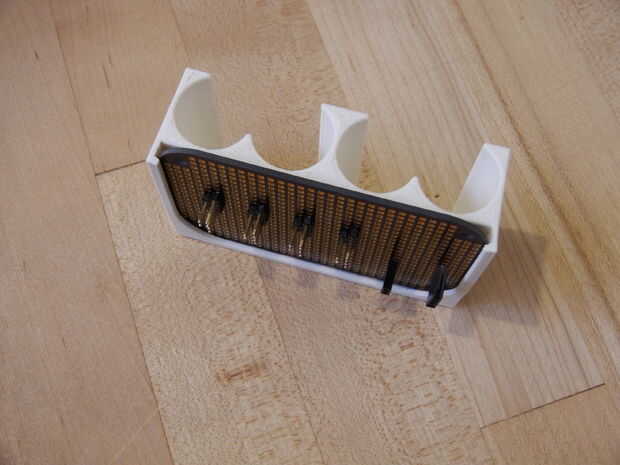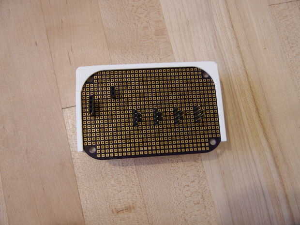 Deslice el protoboard en la ranura en el caso de impresión 3D, luego instale las baterías, tableros de regulador de carga y 5 voltios DC-DC convertidor para el protoboard.