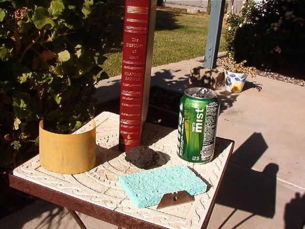 Un pedazo de papel de lija. Sucede que tiene algunos lija adhesiva para un bloque de lijado. Muy conveniente. Esto se utiliza para quitar los tratamientos superficiales de la lata. Esto puede ser opcional. Experimentar y actualizar el instructivo apropiadamente.