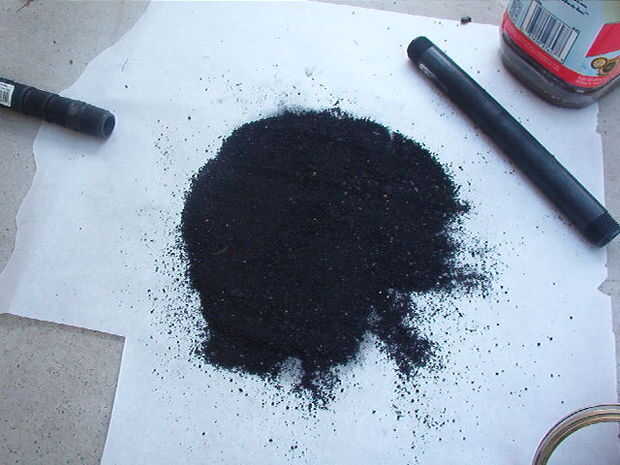 Coloque las briquetas en una basura de plástico de 1 galón y romper con un martillo. Tenga cuidado de no para perforar la bolsa. Usé un tramo corto de tubo de PVC como un rodillo para moler abajo el carbón de leña. Quitar todas las partículas no quemadas de madera que ves.