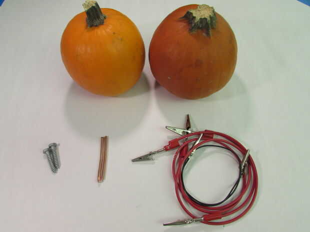 Nota: Esto puede hacerse con una calabaza. Las calabazas más usas, más poder que tienes! Dicho esto, usé dos calabazas conectadas en serie para conseguir más tensión.