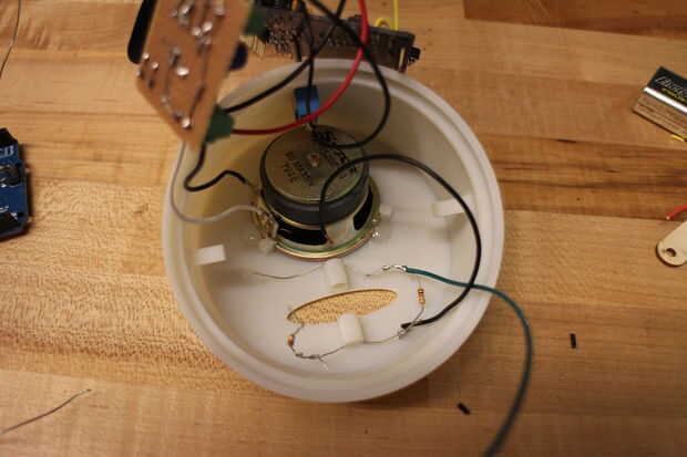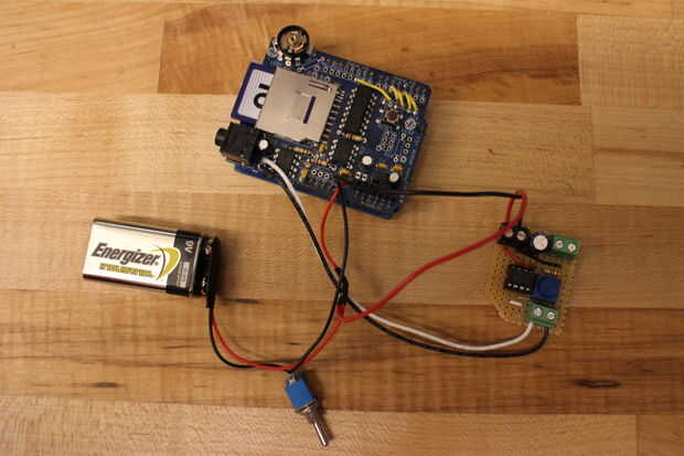 He utilizado el circuito del amplificador LM386 estándar (y simple). Tiene una ganancia de 20 que será más que suficiente. Si máximo hacia fuera el volumen en el protector de la onda y el circuito del amplificador, el audio se llega muy distorsionado. Clippin' no es fácil.