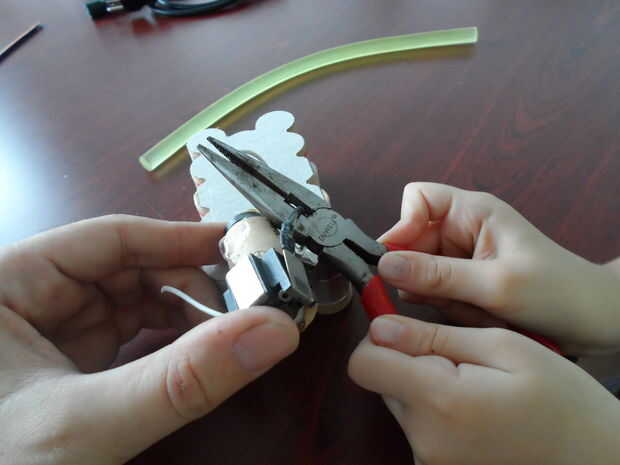 4. guardar el bloque de terminales de plástico y el positivo (+) y tiras terminal negativo (-)