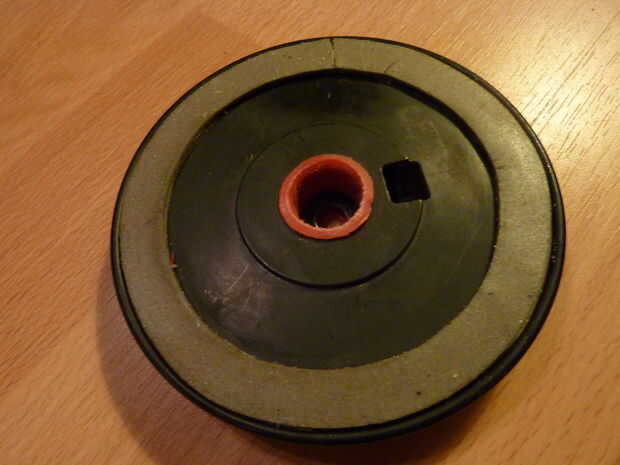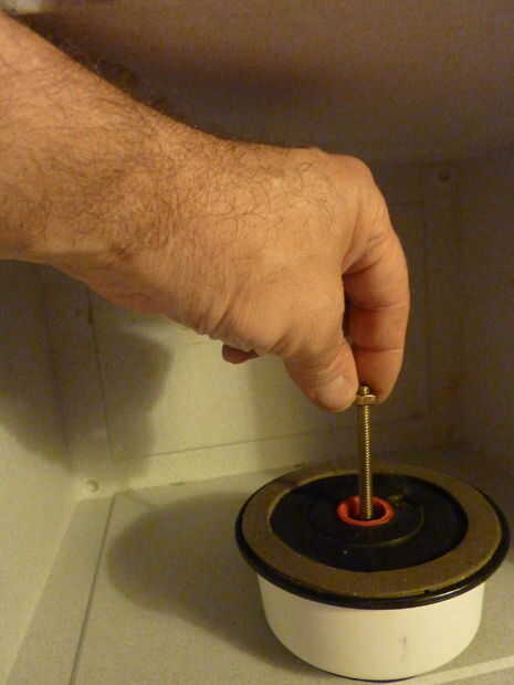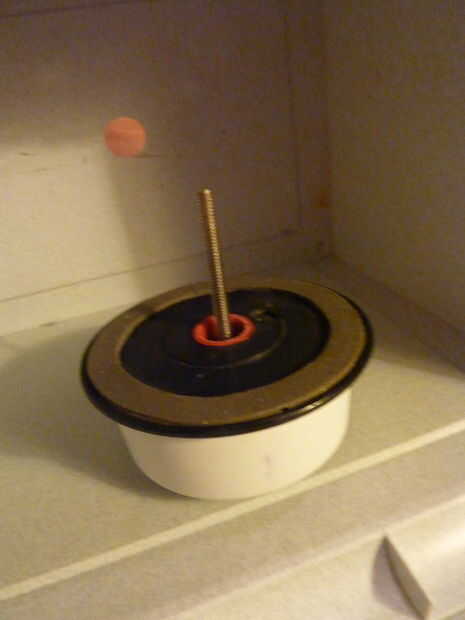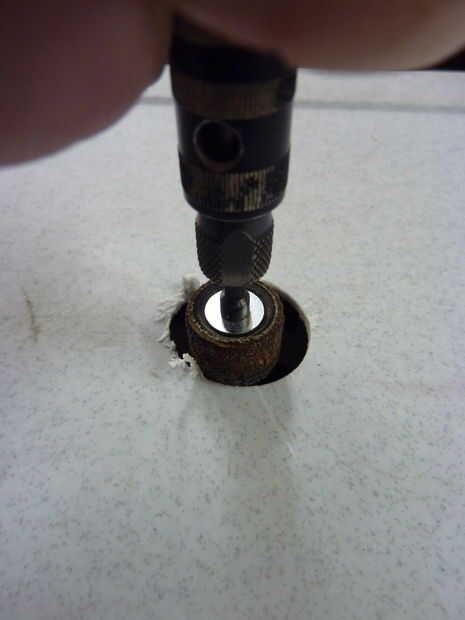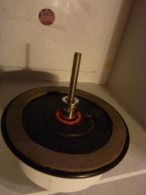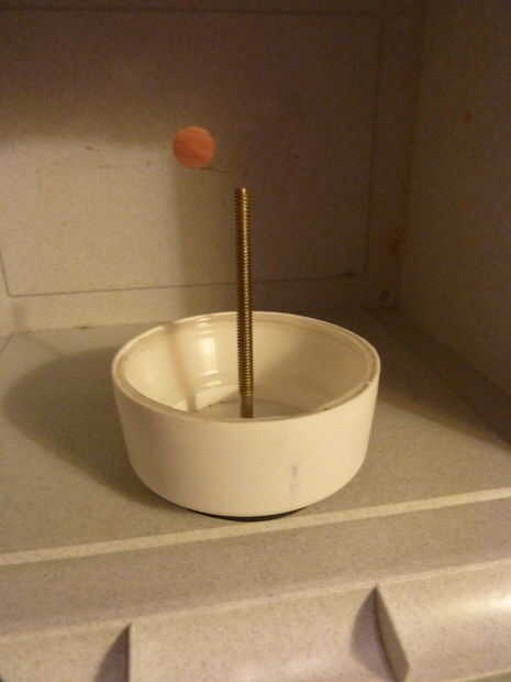 En el otro cable del carrete la mitad, es necesario agregar algo lo suficientemente sólido para soportar alguna compresión. Tenía un espaciador que encajan perfectamente, pero nada con alguna carne que va a funcionar. Perfore un agujero en el centro, de tamaño para ajustarse a una varilla roscada o tornillo de 1/4-20. En este carrete, enchufe los orificios donde puede entrar agua a alta presión. He usado epoxy Marina. Pasó sin problemas y ha mantenido por más de 2 años.