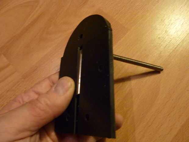 Necesitarás un tornillo lo suficiente para alcanzar a través de todos los componentes además de que es el propio montaje. Me ha pasado que un SS 1/4-20 varilla roscada con 90 grados de la curva a él. Formó una placa de montaje de plástico para mantenerlo y fue capaz de atornillar a la izquierda de la caja. Uno bloquea de madera, con un perno recto que lo atraviesa funcionaría igual de bien... Sólo una advertencia... Uso de hardware de acero inoxidable.