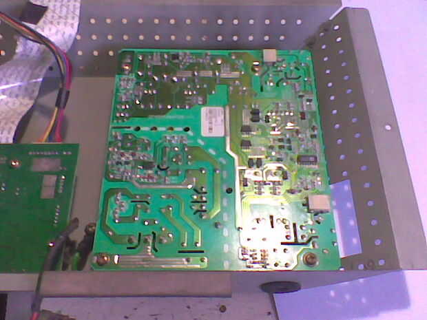 Entonces usted verá dos PCB. El más pequeño es el tablero de regulador, dejarlo allí no es el problema. El PCB más grande es el tablero de suministro de energía. Eso es el problema, continuar eliminar esta placa.